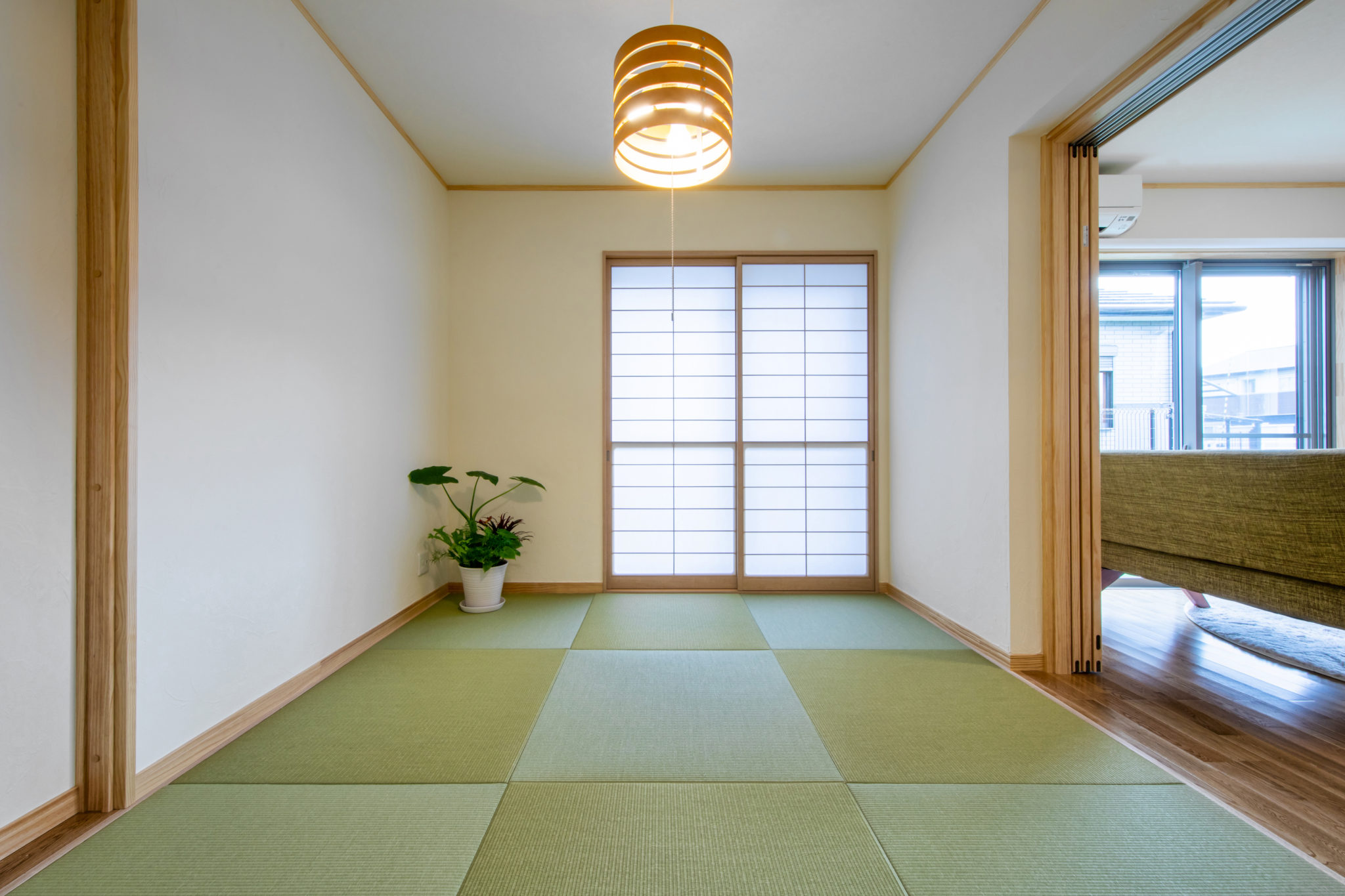 1階のLDKは和室とつながっているので、引き戸を開ければさらに広々とした空間が広がり、大家族の団欒タイムにぴったり。2階のバルコニーは家族全員分の洗濯物や布団を干しても余裕の広さ。バーベキューをしたり、花火大会を見たり、星空を眺めたり…色々な使い方ができます。各部屋の収納はもちろん、スペースを有効活用して可動棚付きの収納をたくさん設けたので、家族みんなの荷物がすっきり収納できます。
