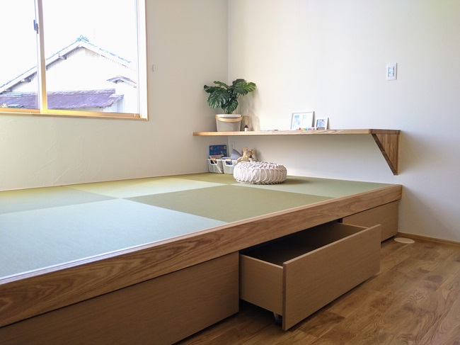 畳の下は引き出し収納。たっぷり収納できて便利です。