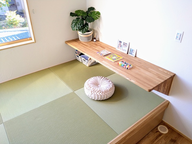 リビングの一角にある小上がりの畳コーナーに机を造り付けました。